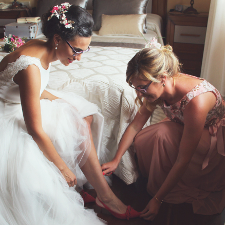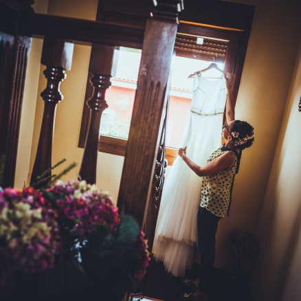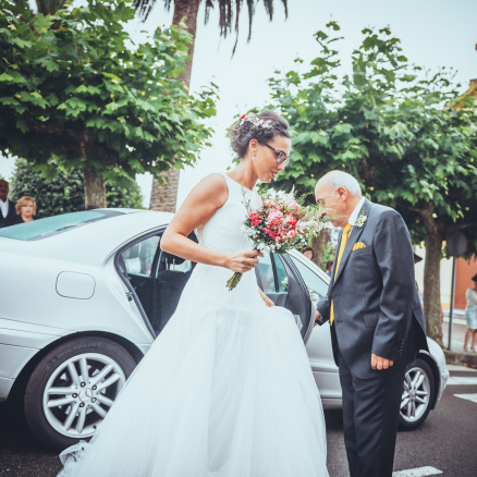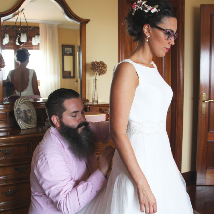Un 17 de Julio de 2015 una encantadora personita se puso en contacto con nosotras porque se casaba en un año, ahí empezó un idilio del que todavía hoy disfrutamos cada vez que hablamos. Tras un año de preparativos del que tenemos increíbles recuerdos, llegaba el 30 de Julio de 2016 y con él, el gran día de Alejandra y Pelayo, la boda sería por la tarde, pero el día amanecía con lluvia y bastante gris, no obstante y como dice el refrán, «Novia mojada, novia afortunada» así que sólo cabía esperar que todo saliera a la perfección, como se merecían estos novios botón tan fantásticos. Desde un principio tenían claro que la ceremonia sería civil y que una prima de Alejandra, (concejal del Ayuntamiento de Soto del Barco) sería quien les casaría, pero la mala pata, nunca mejor dicho, hizo que la pobre, a 6 días de la boda, tuviera que ser intervenida por una rotura y no pudiera oficiar ni asistir al evento, pero como os decía que a estos novios no hay qué ni quien les quite la sonrisa ni la ilusión, se lo tomaron de la mejor manera posible y disfrutaron como era menester. Si algo tenía claro Alejandra, es que el vestido tenía que ser sencillo pero con una espalada increíble y se lo haría el gran Nicolás Costura, que la trató desde el primer momento hasta el último como una reina, llegando a realizar también los vestidos de su madre, quien lo acompañó de un tocado de Tocados y Flores Liliana y de la madre de Pelayo, quien completó su look con un tocado de Tocados Burlesca, ambas espectaculares.