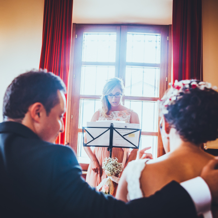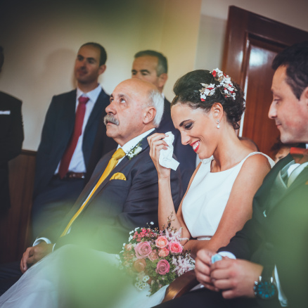 Daban las 18 horas y el Ayuntamiento de Soto del Barco se vestía de gala para recibir a novios e invitados, Alejandra llegó del brazo de su padre y padrino con los nervios a flor de piel, en un mercedes gris de un tío de su madre, que años antes la había llevado también a ella, por lo que fue un momento súper bonito. La ceremonia finalmente fue oficiada por un concejal, pero con una lectura de lo más emotiva que había preparado la prima de Alejandra, que finalmente no les pudo casar. Fue una ceremonia cargada de sorpresas y sentimientos a flor de piel, Alejandra llevaba en el ramo un bonito recuerdo de sus abuelos maternos, que no podían faltar en momento tan especial y tenían que estar presentes de la mejor de las maneras, acompañándola entre sus manos, creado por una gran amiga, Naty. Su mejor amiga Verónica, amigas desde bebitas, les regaló una preciosa lectura en la que no parararon de llorar y los anillos de boda. Pero todas las emociones aún no habían terminado, y es que un grupo de amigas les cantaron una canción, por sorpresa, que habían preparado a escondidas, por lo que la mezcla de risas y llanto no pudo ser mejor, así que los sobrecitos con las lágrimas de felicidad, con una frase súper pensada por Alejandra y totalmente personalizadas, que les preparamos hicieron su función a la perfeccción.