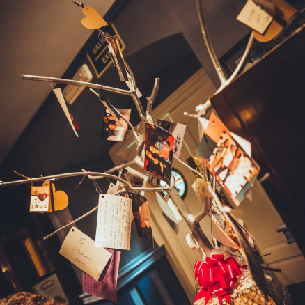 Las amigas de Alejandra hicieron un precioso árbol con fotografías de la pareja y de ellas con una dedicatoria en cada una de las fotos, un recuerdo más para un gran día que no olvidarán jamás.
