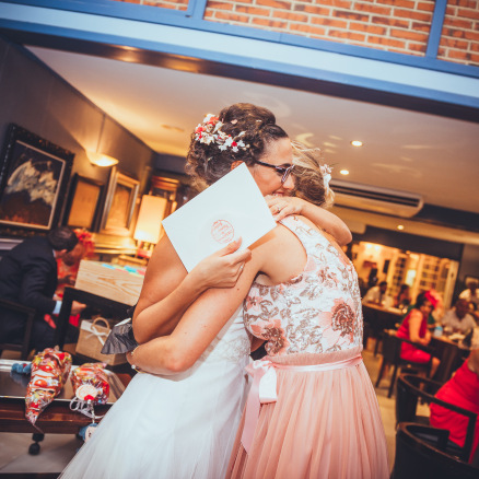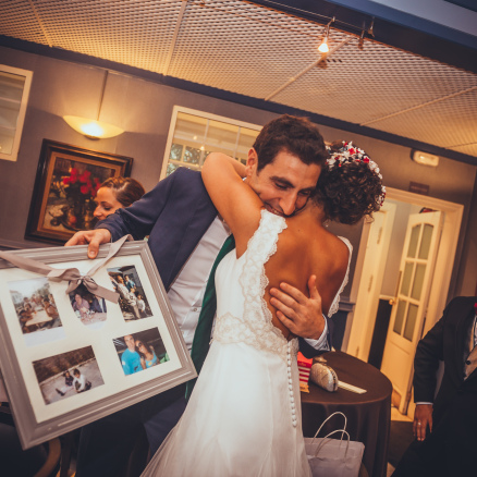En una boda en la que no faltó detalle como esta, hubo regalos para todos, para las chicas se decidieron por unas cajas de galletas de La Gijonesa en forma de las míticas casetas de la playa de Gijón y un espejo con una frase, el nombre de los novios y la fecha. Para los chicos un puro y un abridor también con su nombre y fecha. Para los padres de Alejandra y unos tíos que son como sus abuelos, unos bonitos pañuelos bordados de FT bordados de Gijón. Pero algunos de los invitados tenían todavía un regalo un poco más especial por lo que signifiacan para la pareja, a un amigo de la infancia que se crió con los abuelos de Alejandra, un cuadro con una foto de los dos con los abuelos. A su amiga Verónica una taza con una frase personalizada y una pulsera. Para Naty que iba a ser mamá, un babero con la inscripción «Yo también estuve en la boda de Ale y Pela 30/07/2016». Y como colofón final a los regalos, un ramo de flores para cada una de las mamás y para la prima de Alejandra.