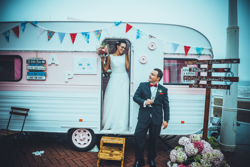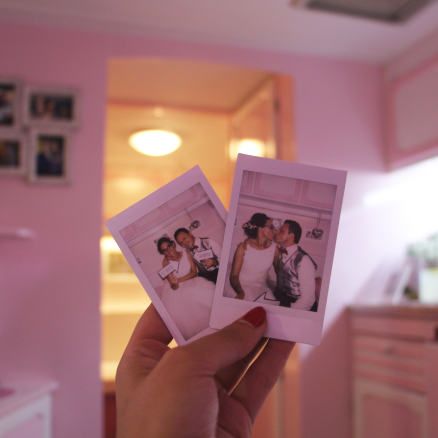Por si todo lo servido en el Real Balneario no hubiera sido suficiente, desde El Botón Rosa les preparamos una preciosa Mesa Dulce, que ocultamos para dar la gran sorpresa a la hora de la fiesta, amenizada por Dismovil. Para rematar la fiesta, teníamos al Botón Rosa preparado en la terraza, que posteriormente al parar la lluvia, tuvo un montón de afluencia, conviertiéndose en el Boom de la Boda según nos indica Alejandra, ya que nadie la había visto, quedando boquiabiertos y dando muchísimo juego durante toda la boda ya que estaba preparada con la cámara instax para que todos los invitados pudieran dejar su foto y recuerdo en el bonito libro de firmas que les preparamos con todo el amor del mundo mundial.